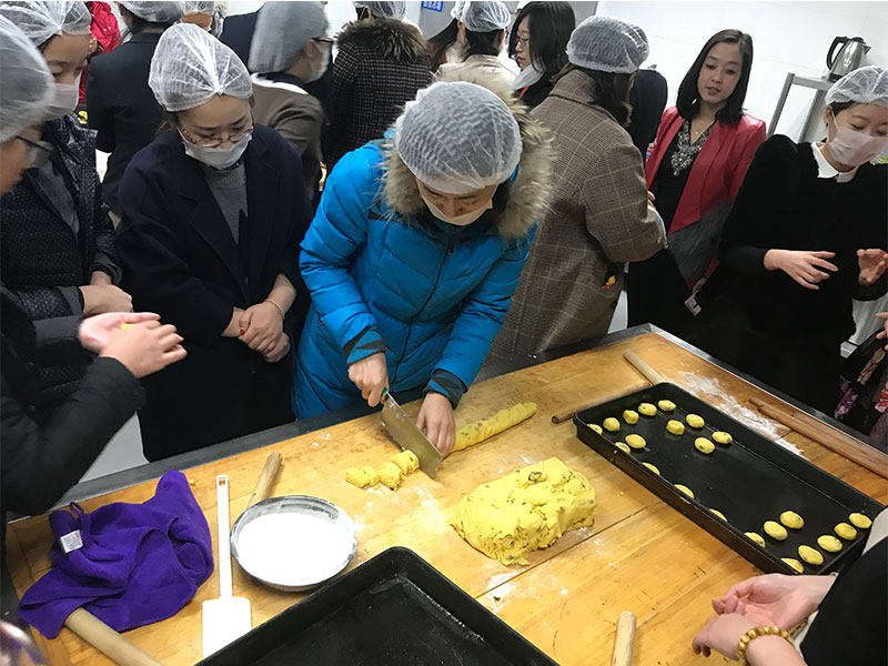 此次活動邀請了玖福團(tuán)膳餐飲管理有限公司經(jīng)驗豐富的專業(yè)面點師現(xiàn)場授課指導(dǎo)。面點師通過現(xiàn)場制作、演示、介紹,對參加活動的女職工進(jìn)行指導(dǎo)幫助。大家認(rèn)真聽講解、做筆記,在面點師的指導(dǎo)下,一起配料、打發(fā)、和面、揉搟、烘焙,興致勃勃,爭相操作實踐,現(xiàn)場一片歡聲笑語。在大家的齊心努力下,奶香四溢的餅干和糖酥餅相繼出爐。大家爭相品嘗著自己的勞動成果,喜笑顏開。